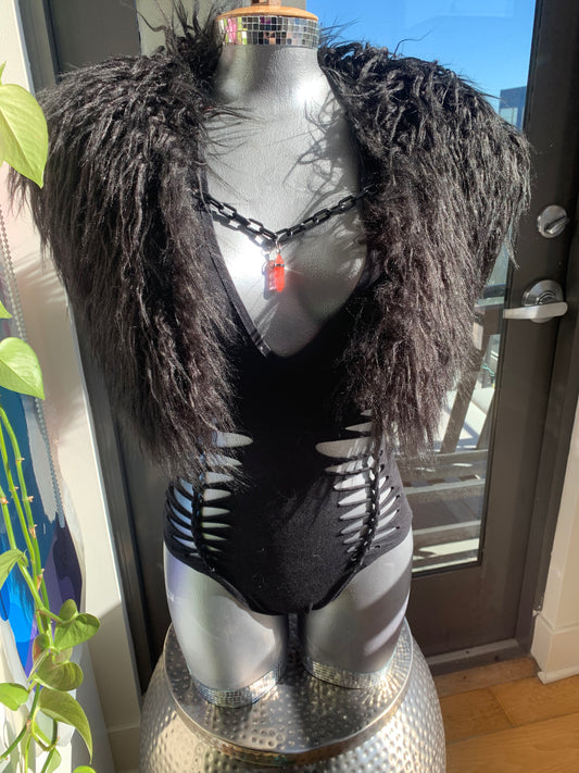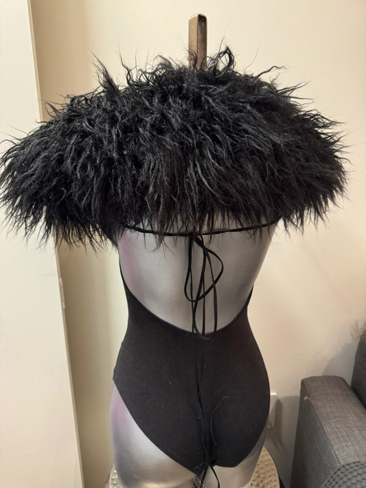Black U-Shaped Fluffe Wrap w/ Hideaway Pocket & Pendant Chain